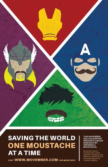 The objective of this project was to bring awareness to a certain cause. I decided to do it on Movember. The idea of doing the Avengers came when I was thinking about how I can depict different kinds of moustaches in an interesting way. Each moustache was then painted by hand, scanned, and placed on their respective character.